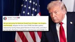 Trump: National Guard being removed from Chicago, LA and Portland | REUTERS President Trump said his administration was removing the National Guard from Chicago, LA and Portland, but he added in his social media post that ... President Trump on Wednesday said the National Guard is leaving Chicago, Los ... - Facebook - Facebook